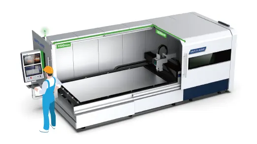 Gabinete elétrico ⁄ fonte de laser ⁄ sistema pneumático ⁄ sistema de lubrificação ⁄ motores de acionamento da mesa, todos integrados à Estrutura Principal, são flexíveis no posicionamento, fáceis de instalar e manter, melhorando efetivamente a taxa de utilização do espaço de produção e reduzindo o espaço ocupado pela máquina, economizando custos de envio.