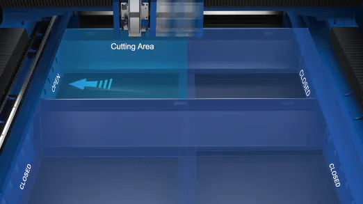● Garante uma boa qualidade de corte mesmo durante o carregamento ou descarregamento da outra mesa;